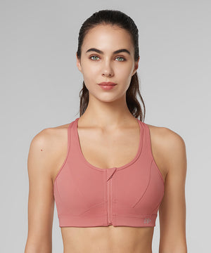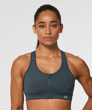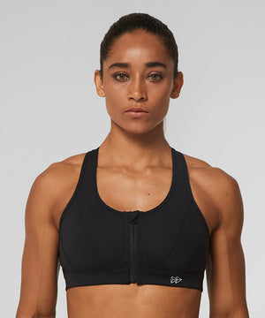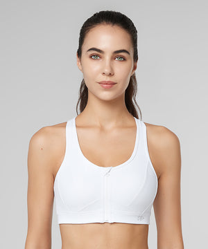 Enfold Zip Front Mesh Racerback Padded Running Bra