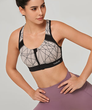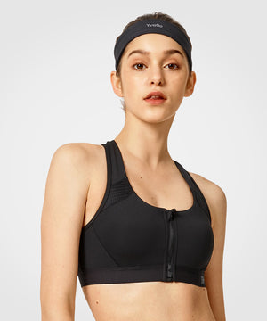 Enfold Zip Front Mesh Racerback Padded Running Bra
